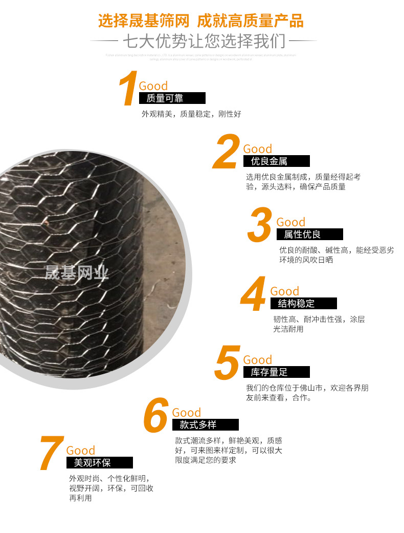 产品详情:佛山市晟基筛网有限公司原恒兴筛网厂。我们的支系工厂成立于2004年。主工厂座落河北省安平县,占地面积10,000平方米。分厂技术力量丰厚,有能力生产大型屏风系列产品,可提供定制标准和产品质量,经过多年的发展,已成为珠三角的出名佛山屏幕制造商。主要产品有:高速公路(铁路)围栏网,护栏板,不锈钢网,传送带网,勾花网,刺丝(刀片刺丝),bump网网片,冲孔网,焊接网,轧花网,金属网,建筑物网,塑料网,土格网,广州筛网和各种异形网。欢迎各界新老客户光临协作!!!